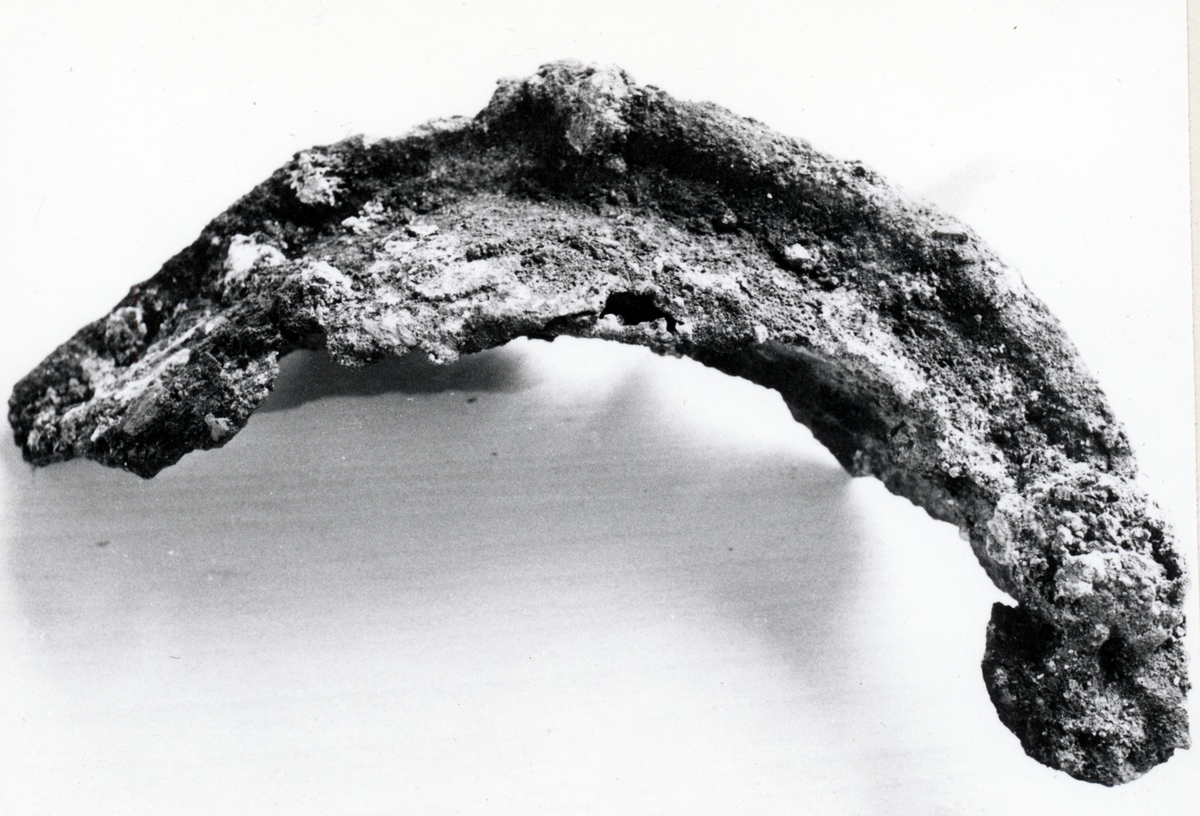 Fragment av hjälm. Fynd ifrån utgrävningarna på Kalmar slott. Rapporten: Krutkammaren, vallgraven, västra vallen och brunnar.