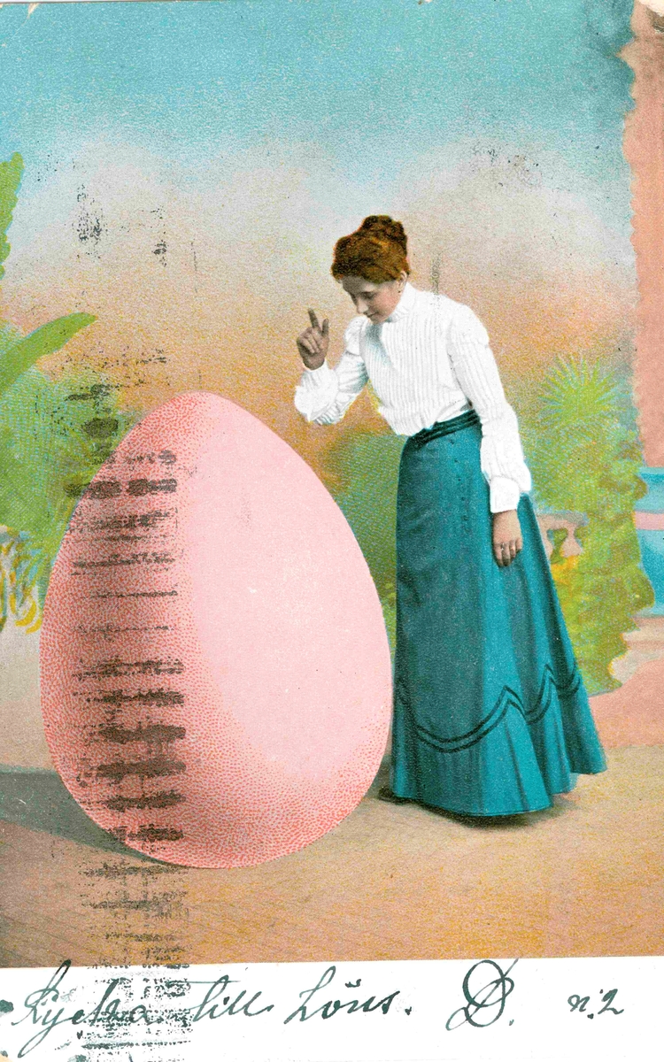 Vykort skickat till Kristina Andersson, född 1865 i Böda, syster till N J Andersson, när hon bodde i USA. Skrivet av Edvard Nilsson i Böda. På kortets nedre del står skrivet: "Lycka till Höns."