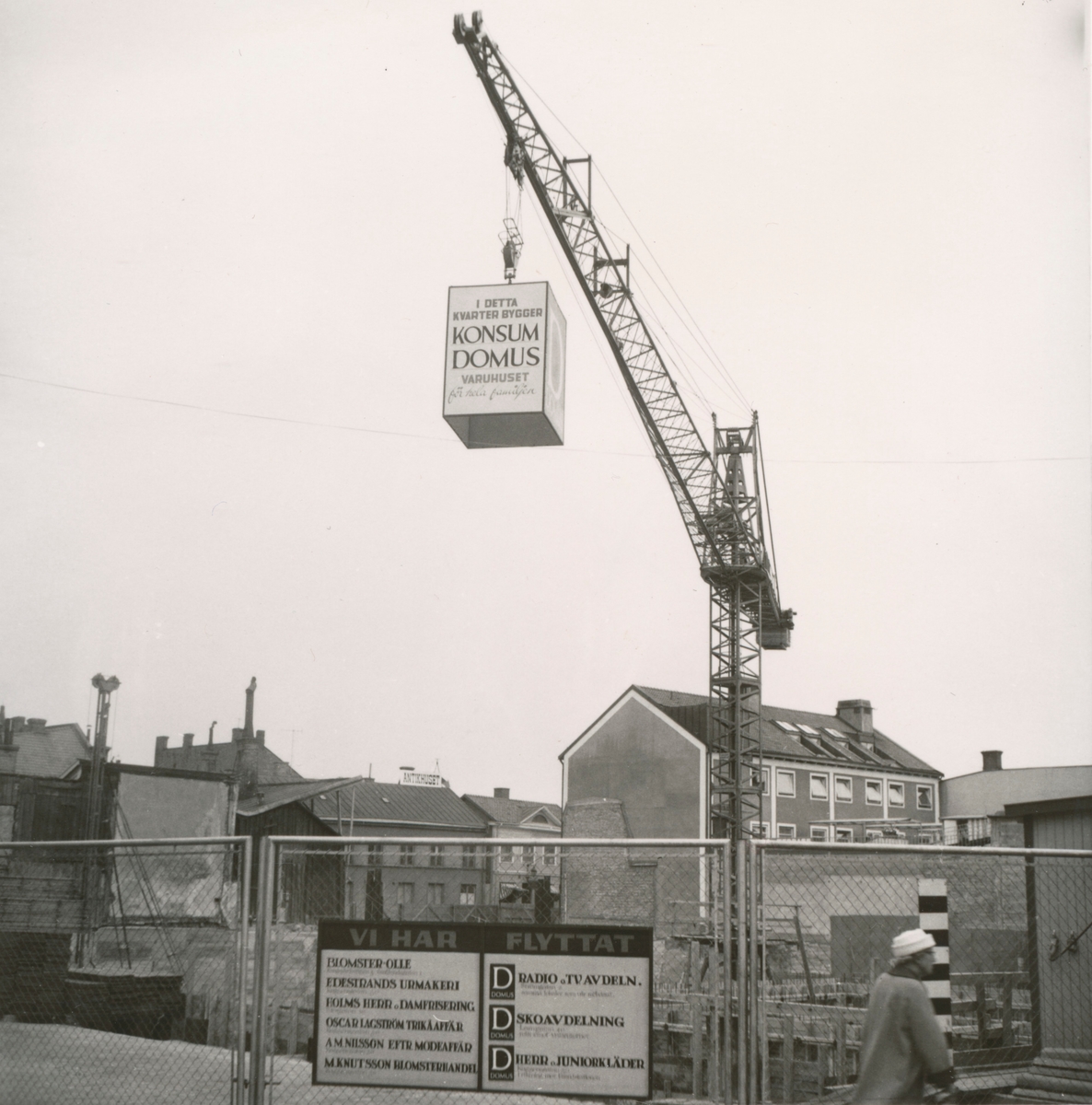 Titel: Byggandet av Domusvaruhuset på Storgatan.