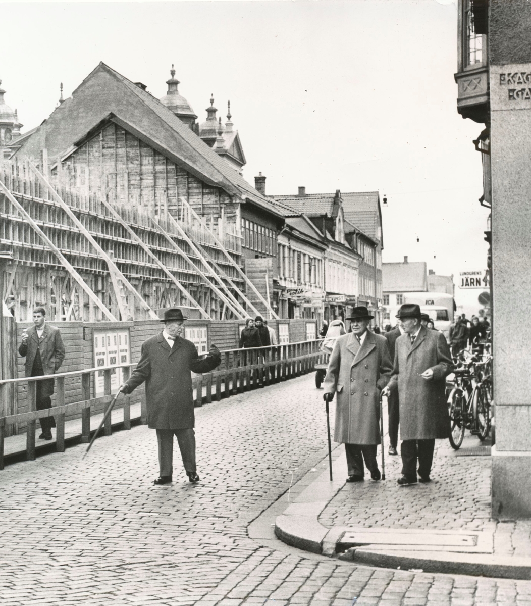 Byggandet av Domusvaruhuset på Storgatan. Mannen som står ute i gatan är chefen för Ludvigsvaruhuset.