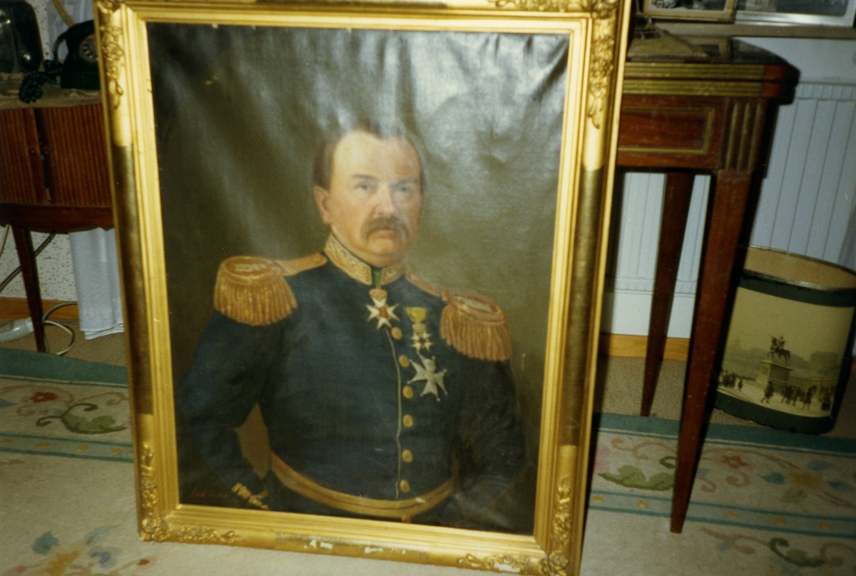 Fredrik Salomon Posse, född 1820, död 1895. Hovstallmästare på Ottenby, gift med Eva Charlotta Ramsay. Född 1830, död 1916. Porträtt av Fredrik Posse avfotograferat hemma hos Marianne Posse, Djursholm.