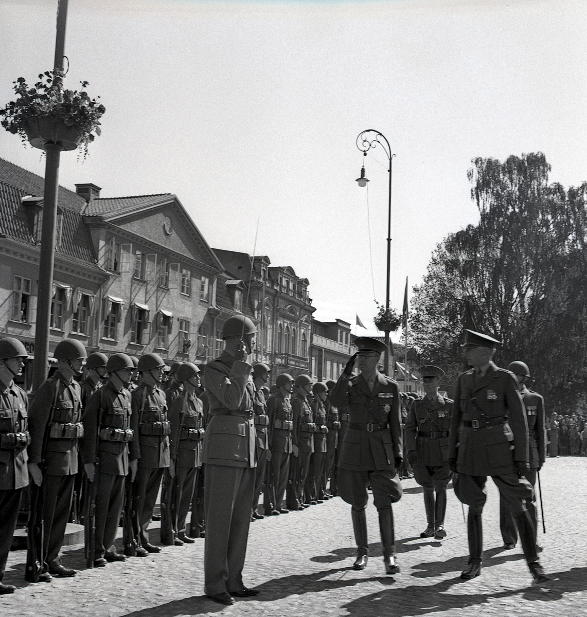 Kronprinsen inspekterar hederskompaniet på järnvägsplanen.