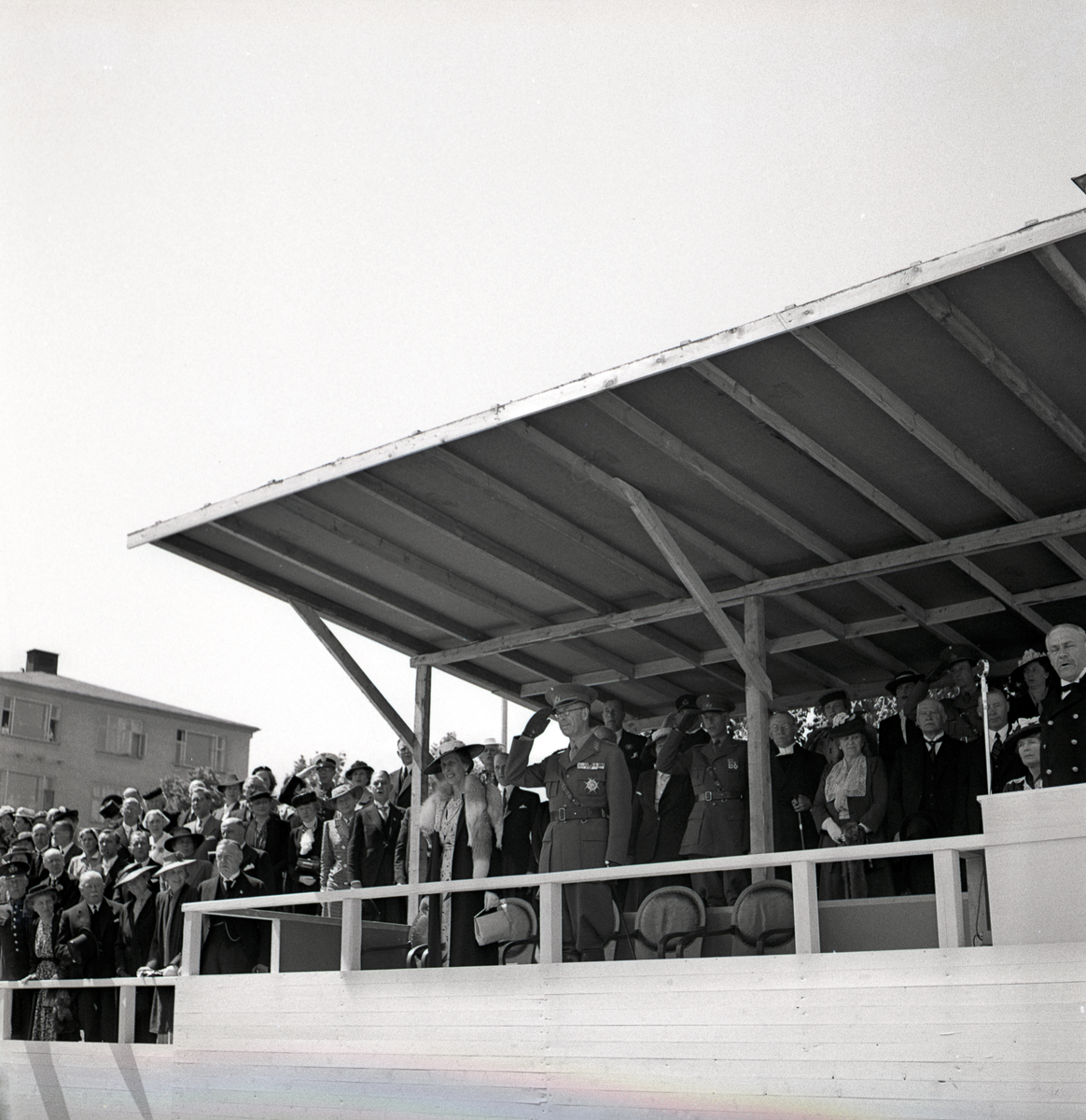 Kronprins Gustaf Adolf och hans maka Louise hälsar publiken