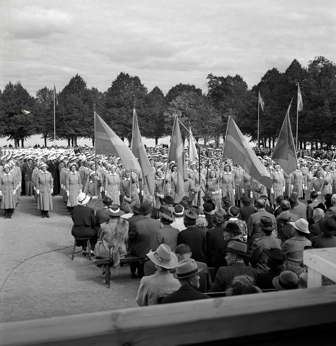 Vy över de församlade på skolgården till Växjö Högre Allmänna Läroverk.