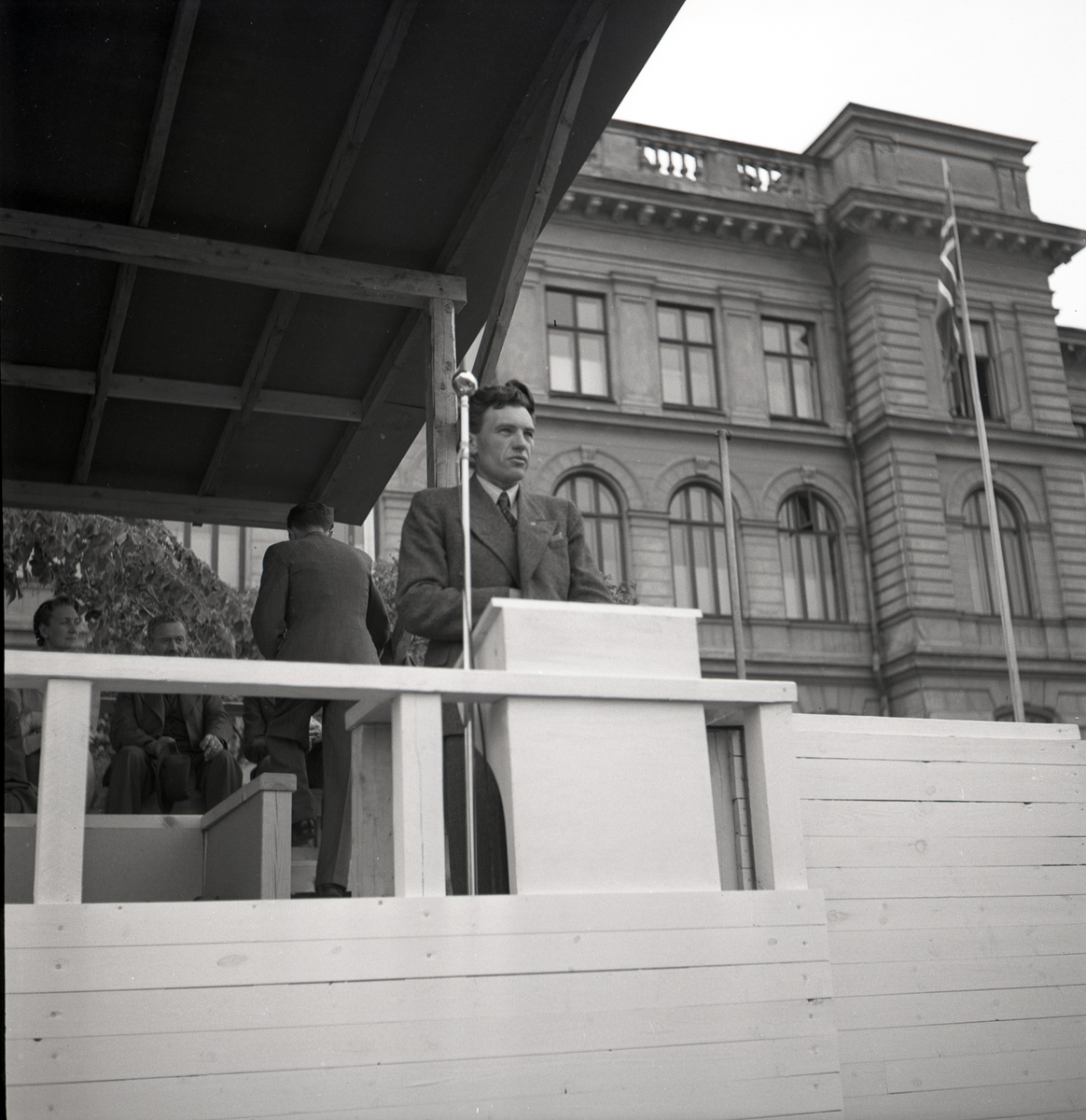 En man i talarstolen på lantbruksutställningen i samband med jubileumsfirandet 1942.