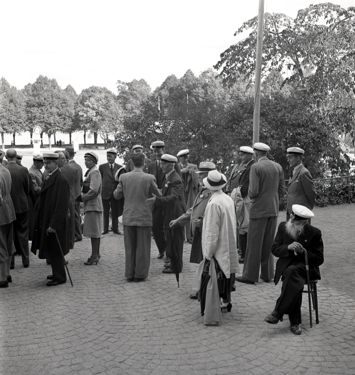 Växjöstudenternas dag. Flera f.d. studenter har samlats för återträff på skolgården till dåv. Växjö Högre Allmänna Läroverk.