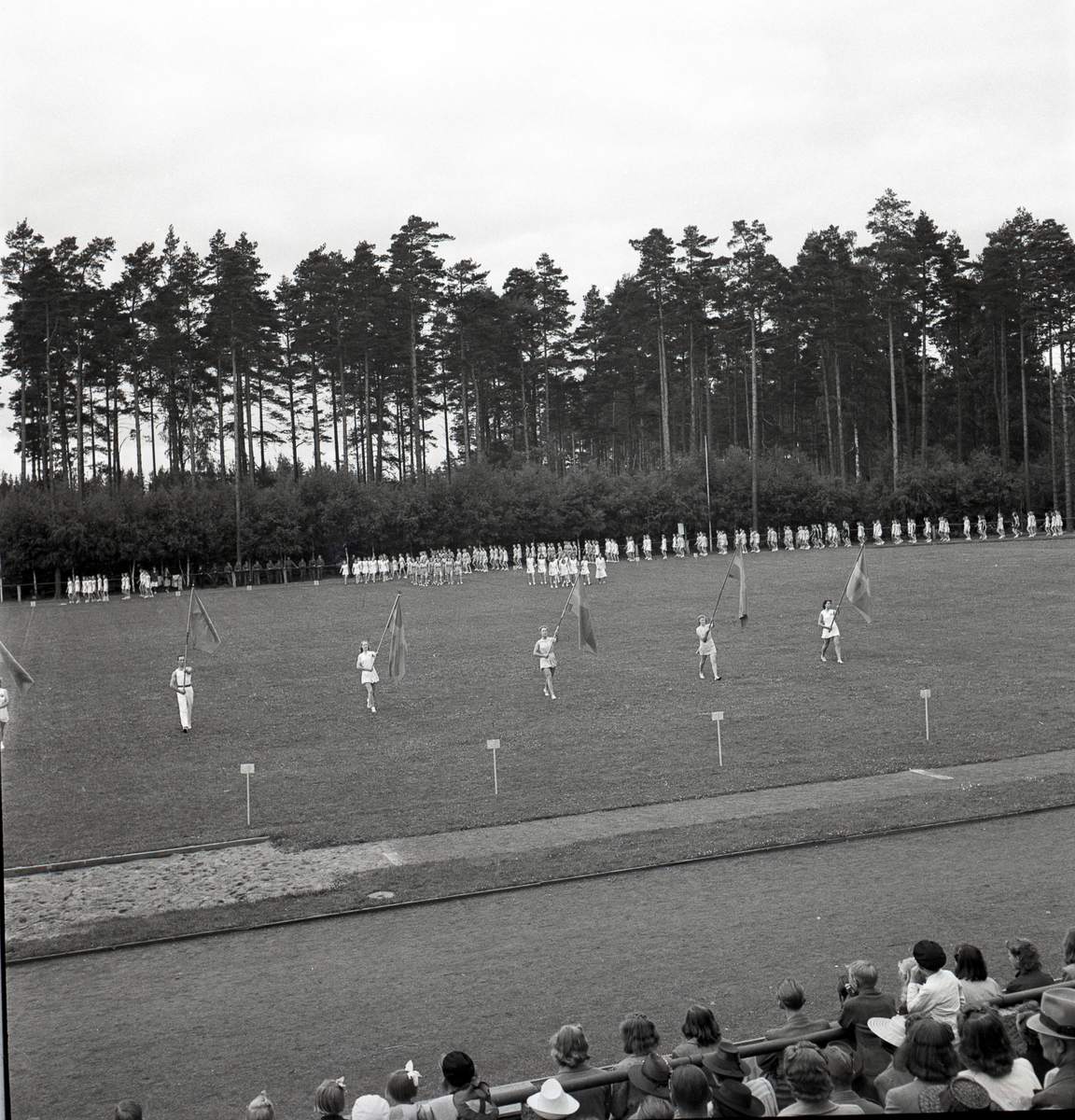 Intåg av gymnaster på Värendsvallen under Gymnastikens dag.