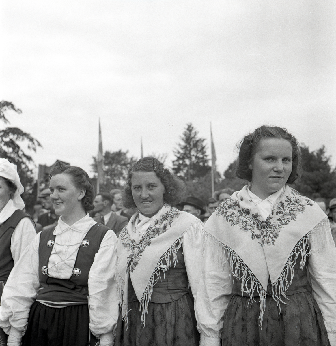 Kvinnor i olika folkdräkter.