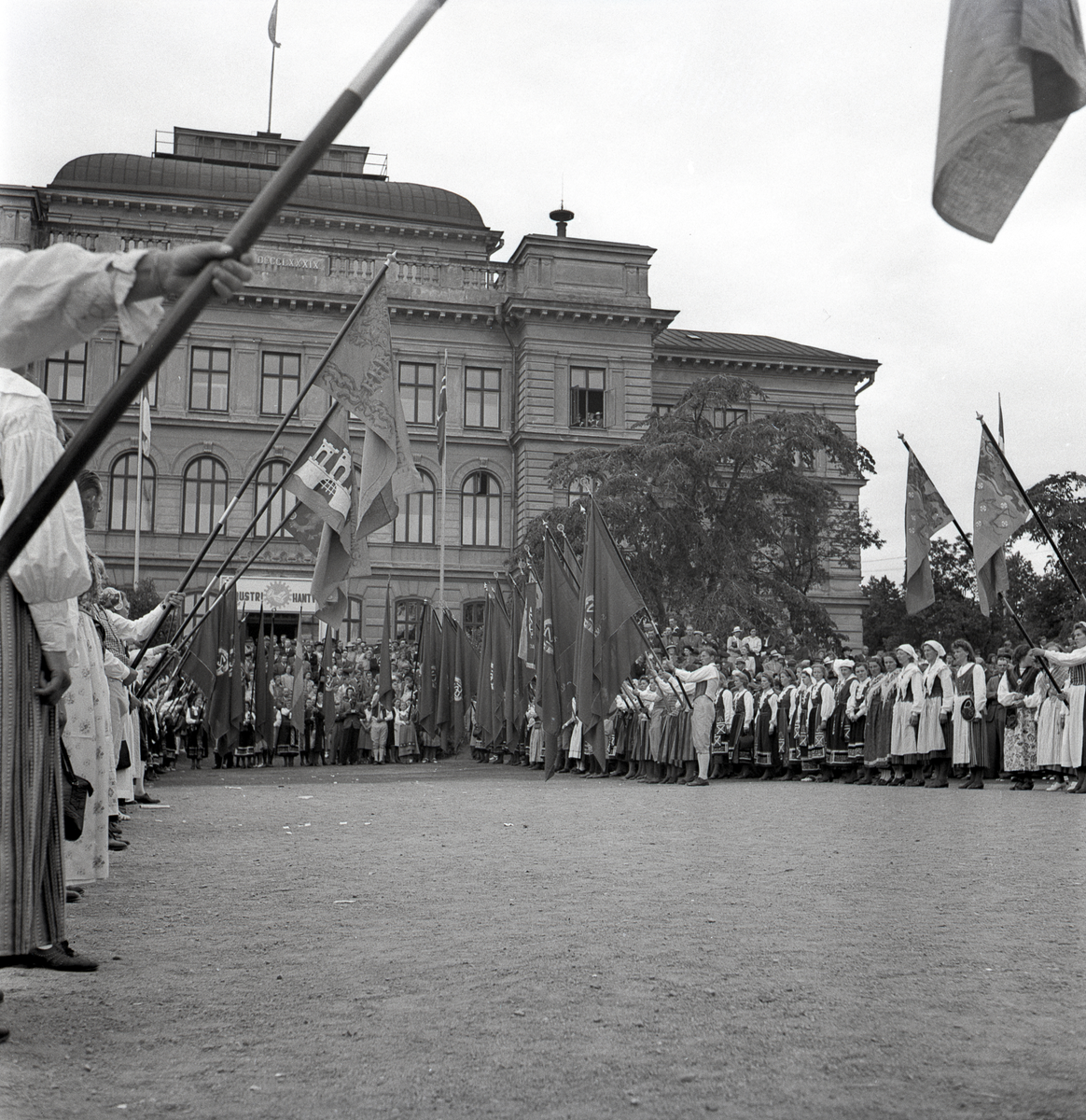 Fanborg m.m. på skolgården till Växjö Högre Allmänna Läroverk.
