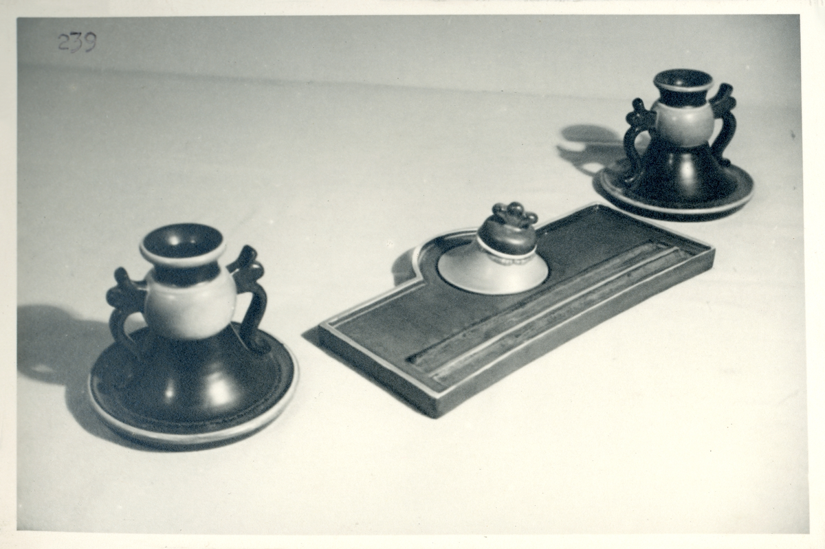 Ljusstakar och skrivställ från Bo Fajans, 1900-talets mitt.