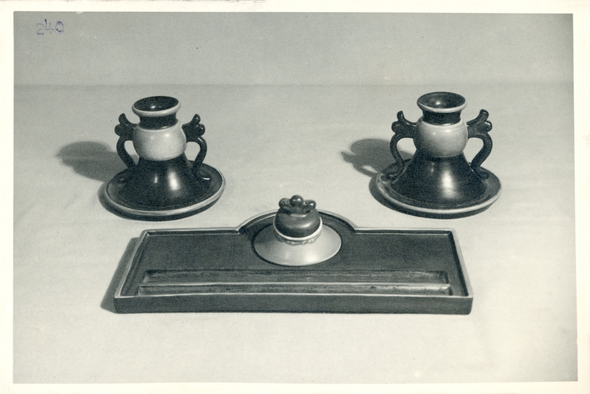 Ljusstakar och skrivställ från Bo Fajans, 1900-talets mitt.