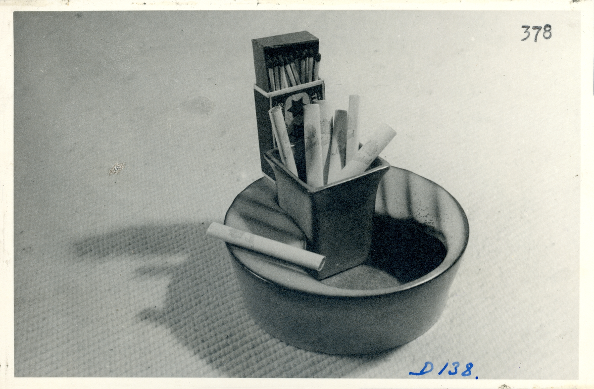 Askfat med tändsticks- och cigaretthållare från Bo Fajans, formgivare Ewald Dahlskog, 1900-talets mitt.