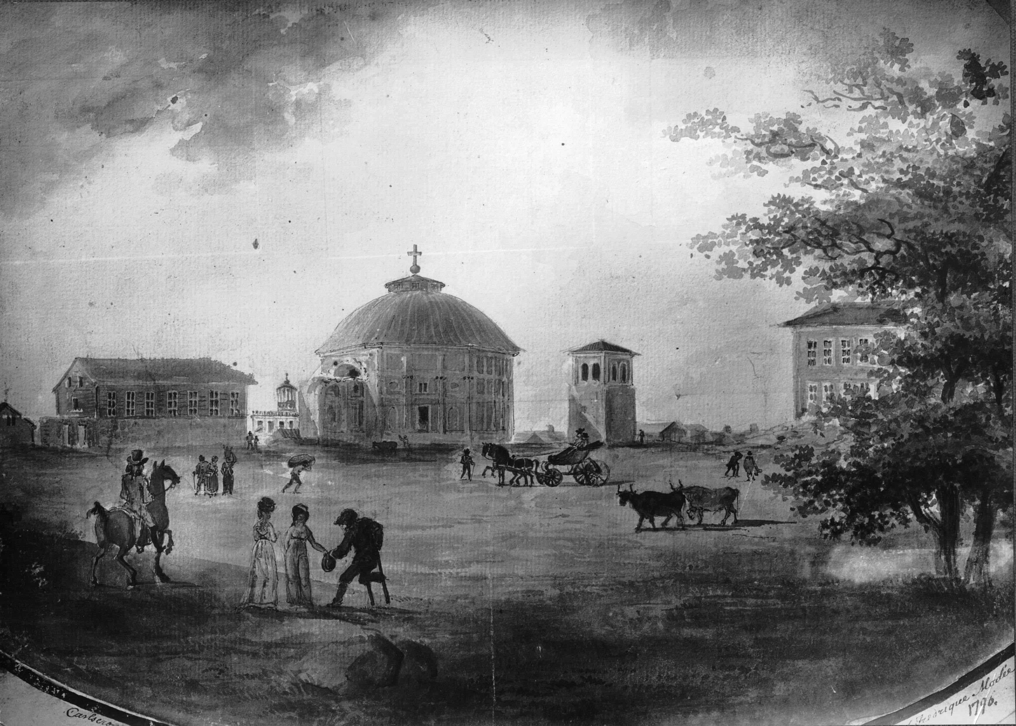 Kyrkan med omgivning. Lavering av Fredrique Modér 1796.