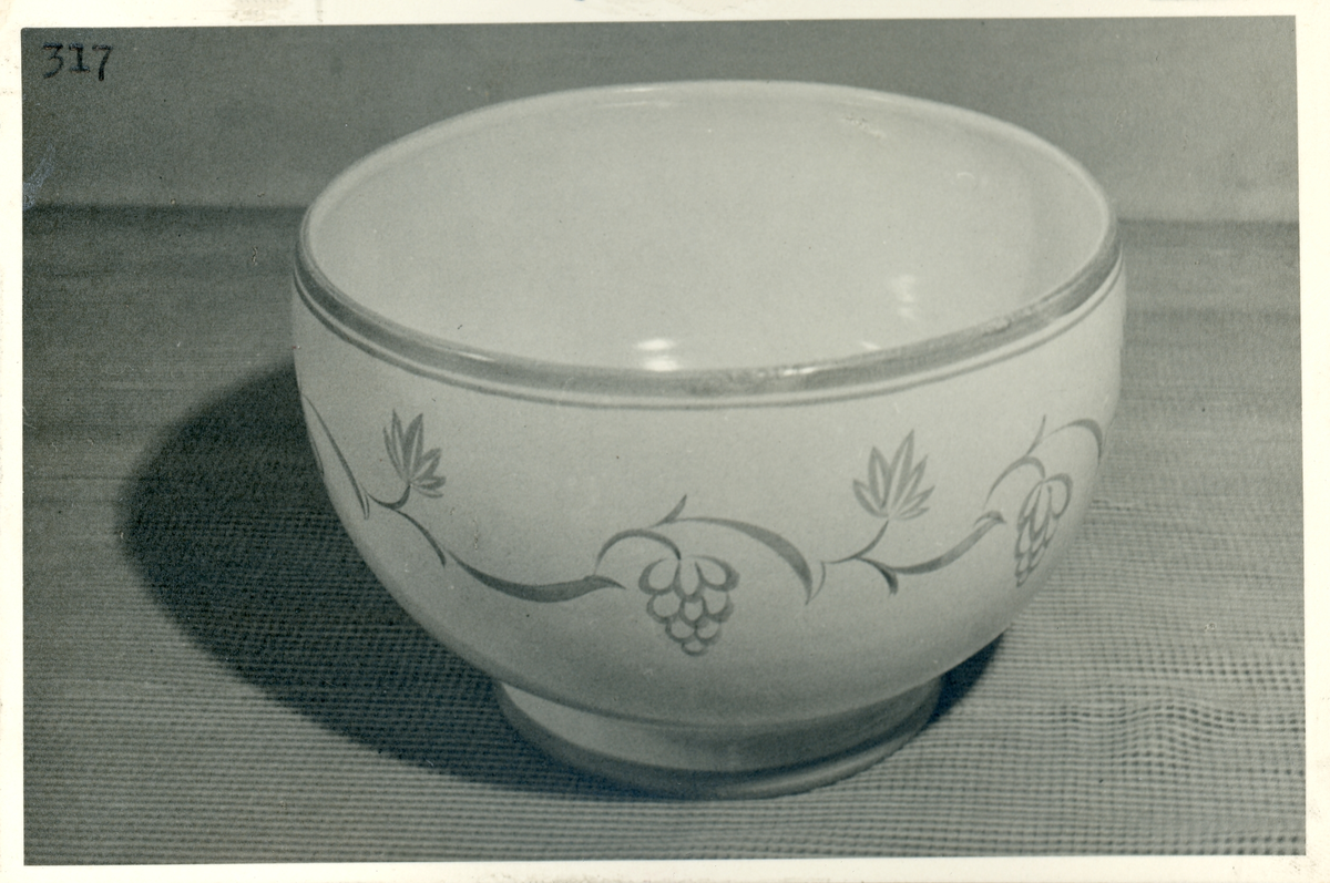 Dekorerad bålskål från Bo Fajans, formgivare Eva Jancke-Björk, 1900-talets mitt.