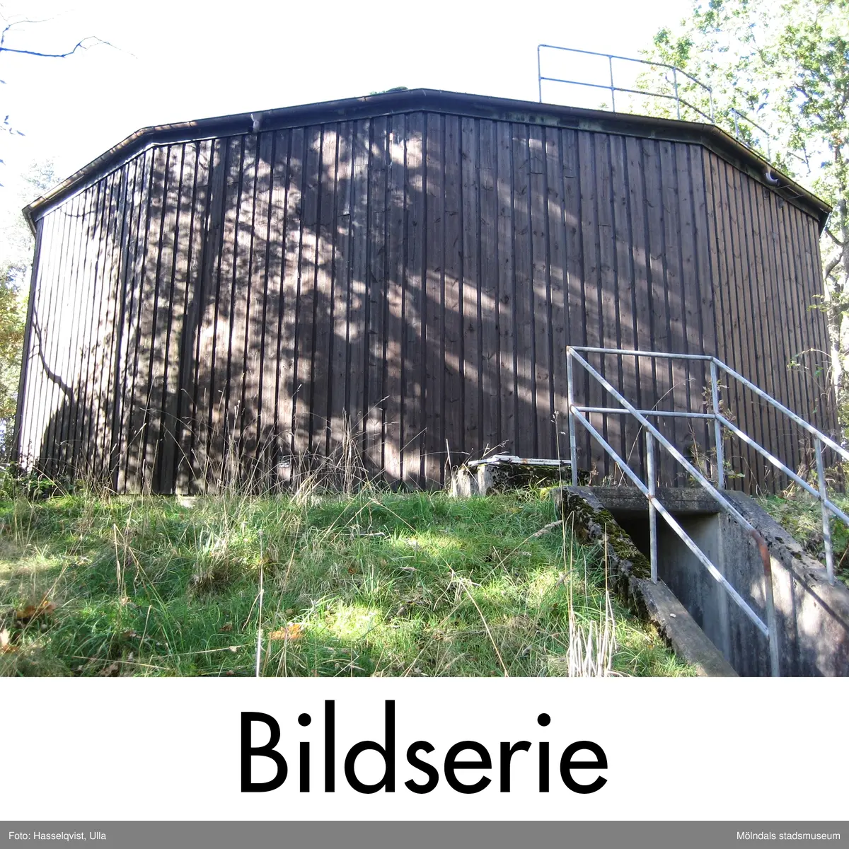 Serie om tre fotografier som visar en vattenreservoar i Stretered, Kållered, i Mölndals kommun. Fotografierna är tagna den 14 oktober 2010. Byggnadsdokumentation inför rivning.