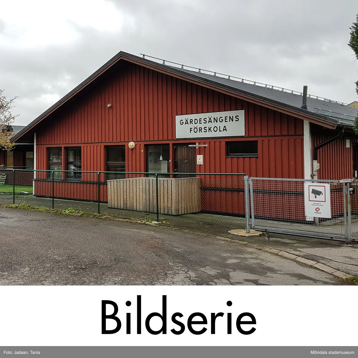 Serie om sju fotografier som visar Gärdesängens förskola med adress Måldomargatan 1 i Åbyområdet, Mölndal. Fastighetsbeteckning är Kallblodet 1. Fotografierna är tagna i oktober 2018. Byggnadsdokumentation inför rivning.