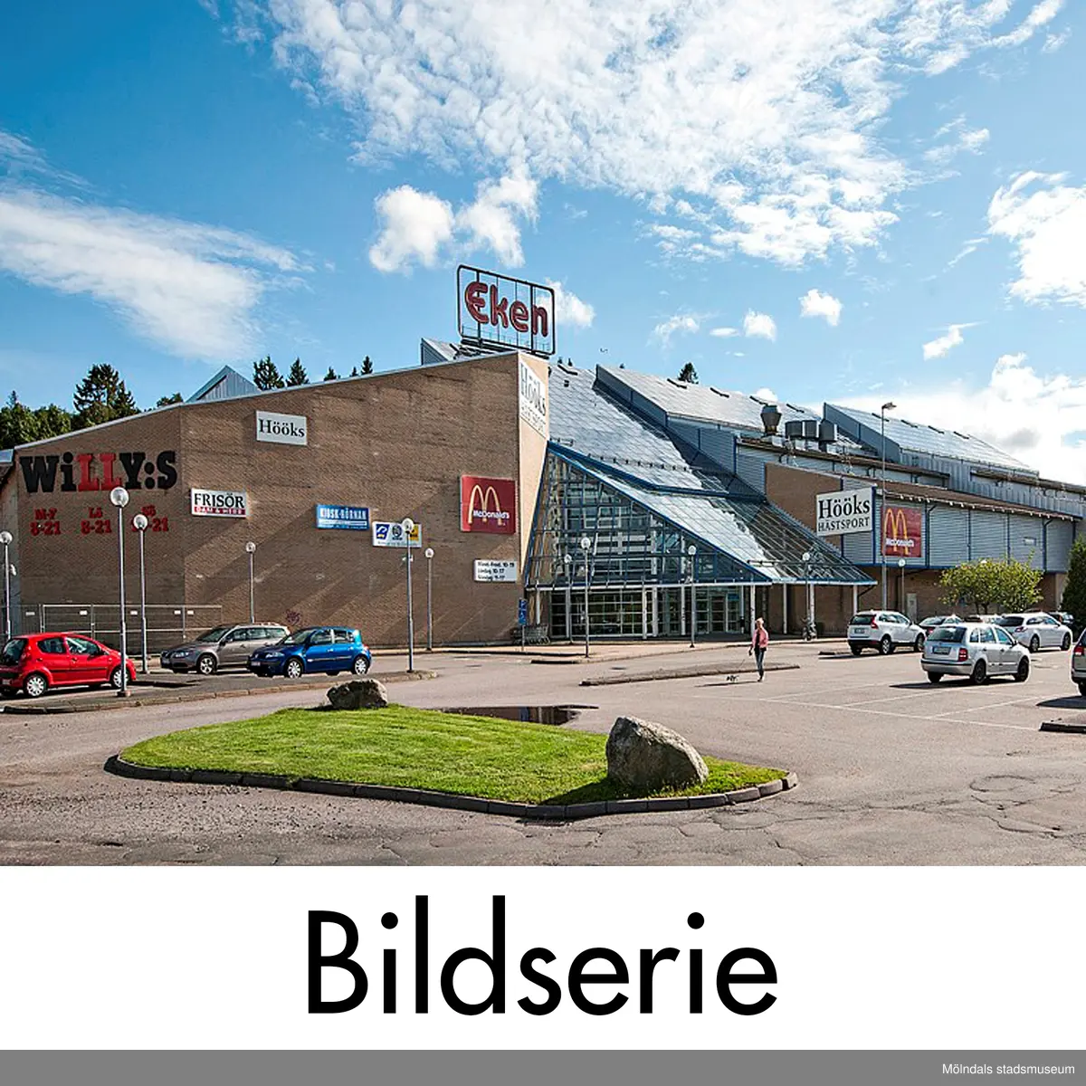 Serie om 18 fotografier som visar köpcentret EkenCenter i Kållered, Mölndals kommun. Byggnadsdokumentation inför rivning. Fotografier tagna 2012. Byggnaden, som har adressen Ekenleden 3, revs år 2013 och är ersatt av en byggnad som även den innehåller detaljhandel.