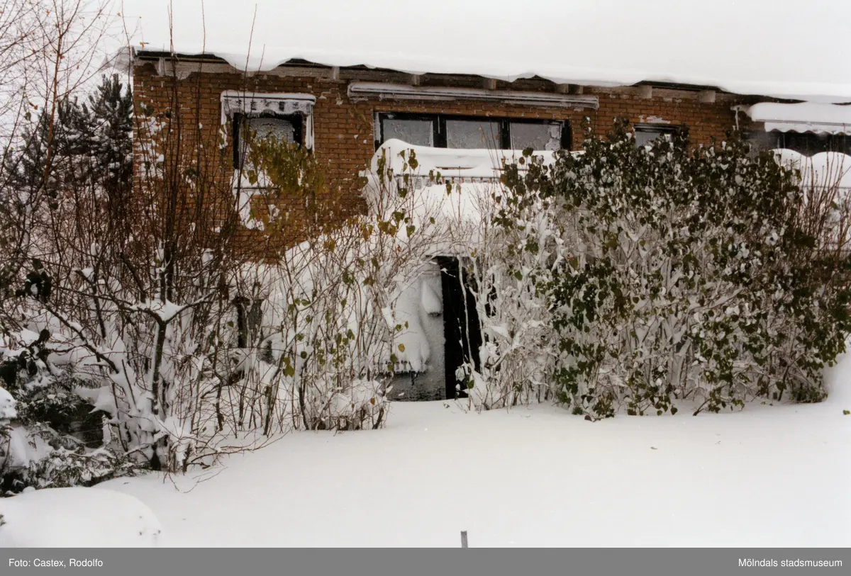 Hus i bostadsområdet vid Höjdgatan i Mölndal efter snöstormen den 17 november 1995.