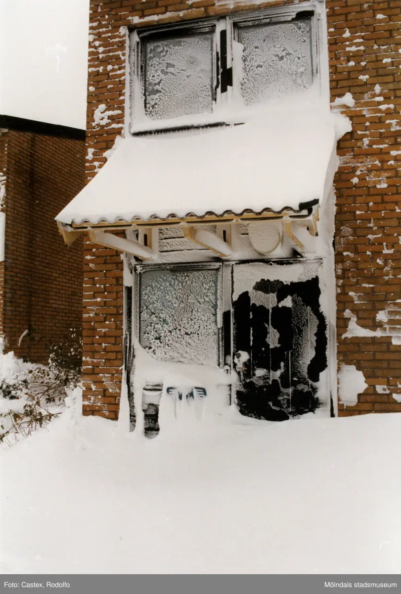 Hus i bostadsområdet vid Höjdgatan i Mölndal efter snöstormen den 17 november 1995.