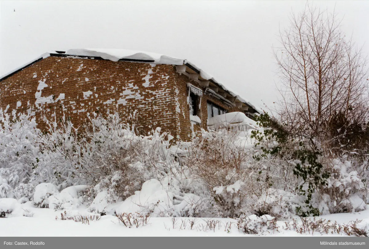 Hus i bostadsområdet vid Höjdgatan i Mölndal efter snöstormen den 17 november 1995.