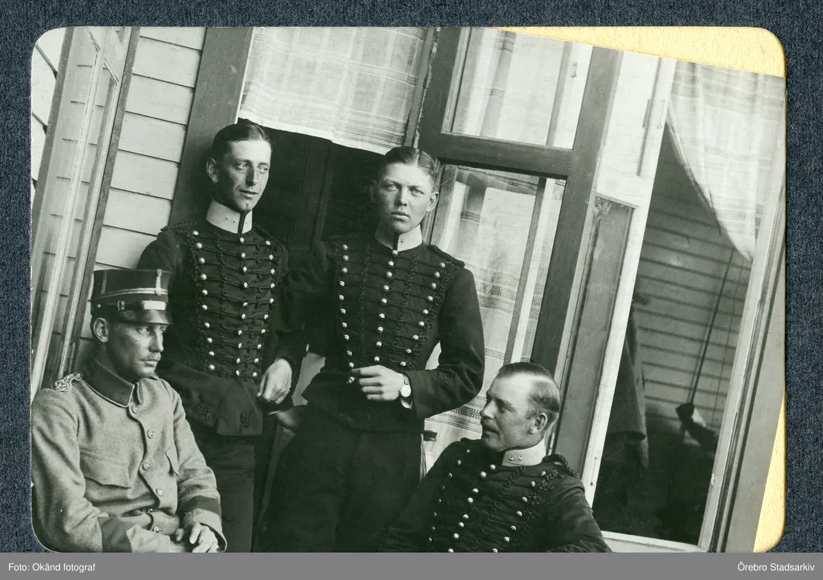 Fyra officerare i samtal på en veranda, 1913