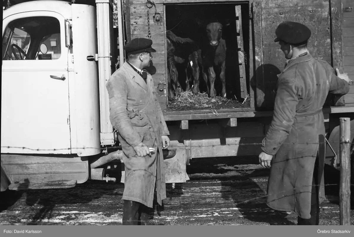 Djurtransport med gamla slaktbilen, 1950-tal