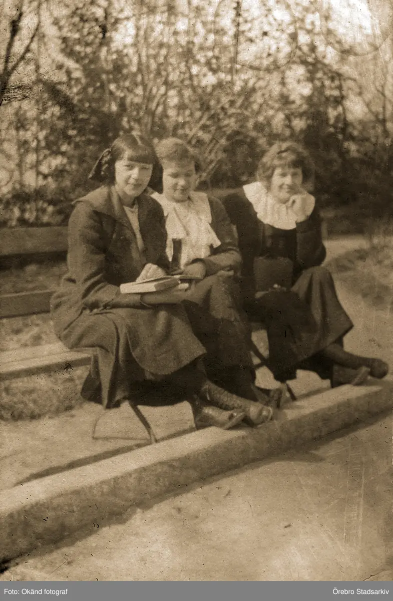 Tre flickor på parkbänk, 1918