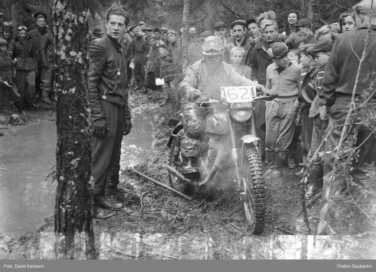 Motorcykeltävling i skogarna kring Norrbyås, 1950-tal