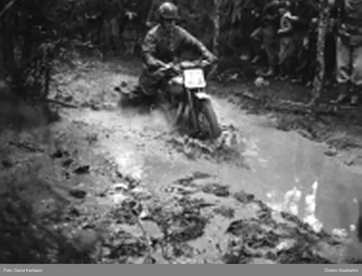 Titel: Motorcykeltävling i skogarna kring Norrbyås, 1950-tal