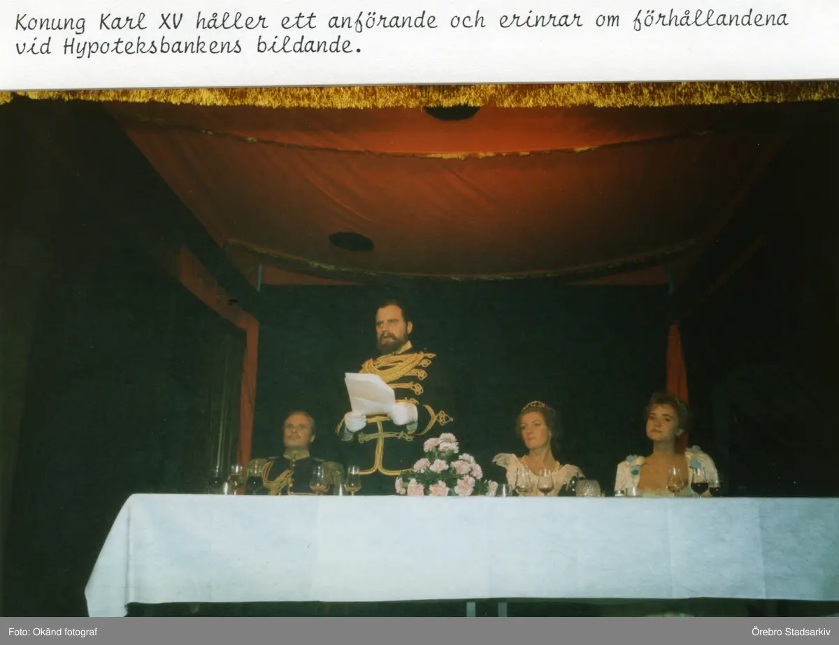 Konung Karl XV håller anförande och erinrar om förhållandena när stadshypoteket bildades, 1986-09-23