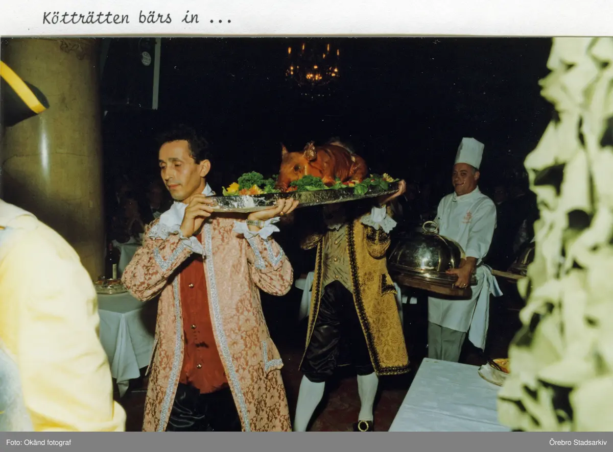 Den helstekta grisen bärs in vid jubileumsbanketten, 1986-09-23