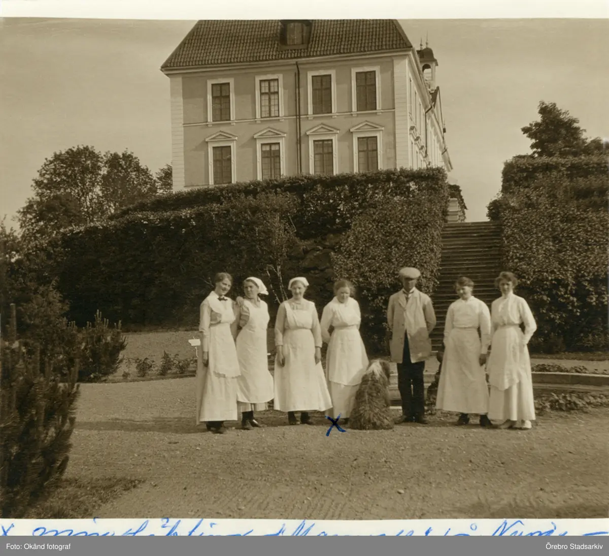 Mamsell på Nynäs slott med husor och annan personal, 1920-tal