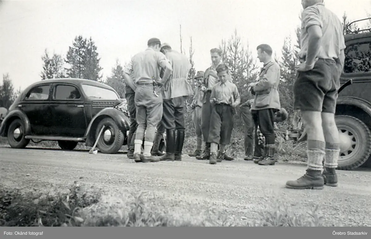 Skogiselever får instruktion före skogsröjningen, 1947