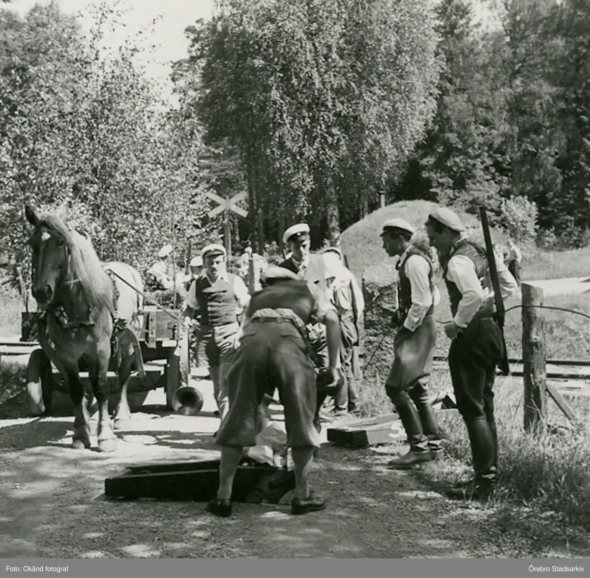 Skogisstudenter med häst och vagn, 1946