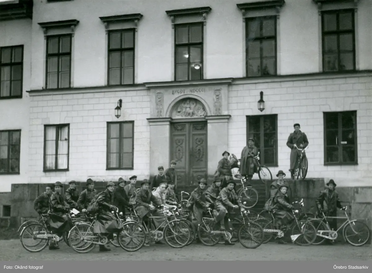Samling vid trappan på Garpenbergs herrgård, 1945