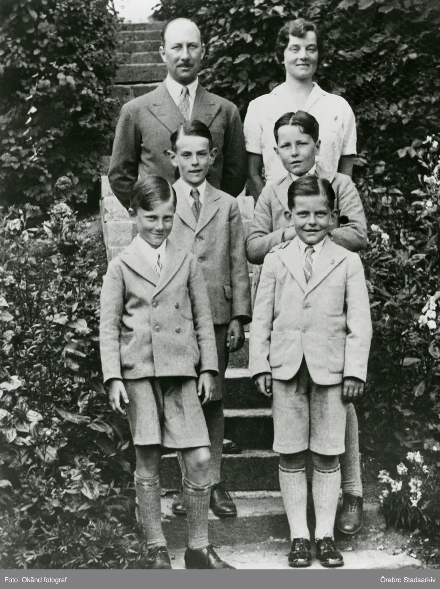 Johan Gripenstedt, tre barn och två vuxna von Platen, ca 1935