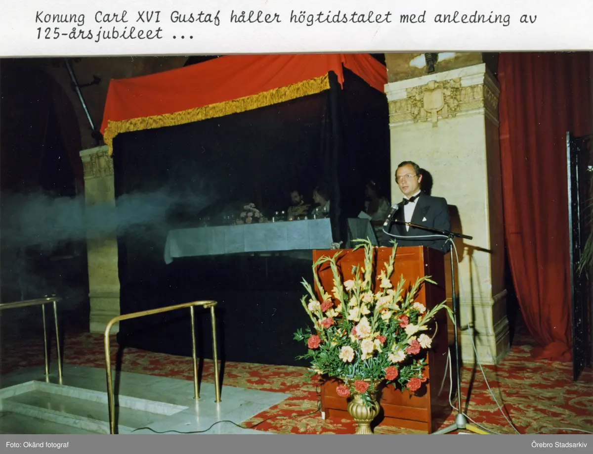Konung Carl XVI Gustaf håller högtidstal med anledning av stadshypotekets 125-årsjubileum, 1986-09-23