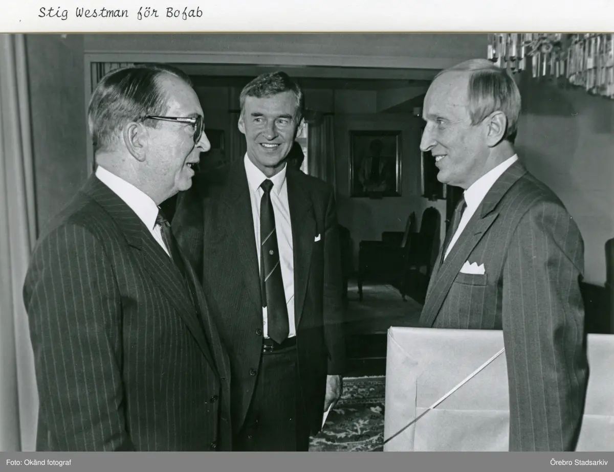 Överlämnande av jubiléumsgåva för Bofab, 1986-09-23