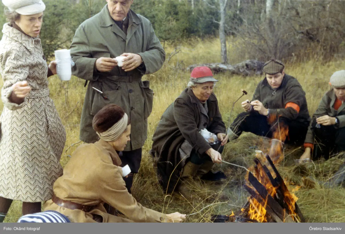 Korvgrillning över öppen eld i Asker under älgjakten, 1971