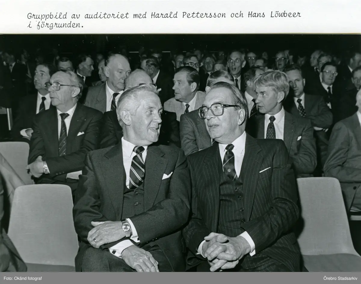 Gruppbild av auditoriet vid Sveriges allmänna hypoteksbank 125 år-jubileum, 1986-09-23
