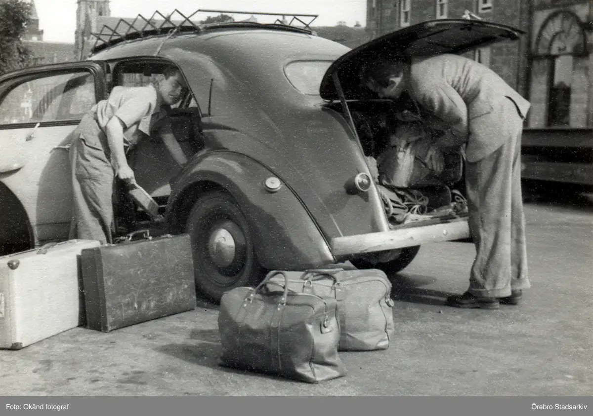Bil lastas i eller ur vid Garpenbergs herrgård, 1946