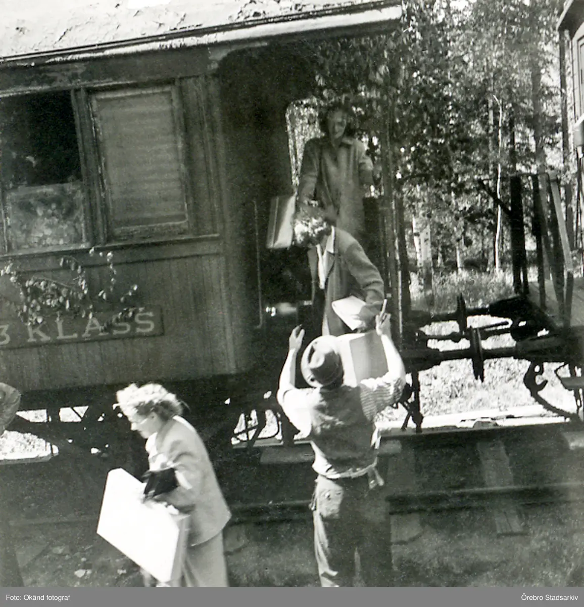 Skogis-elever hjälper flickor ur järnvägsvagn, 1945