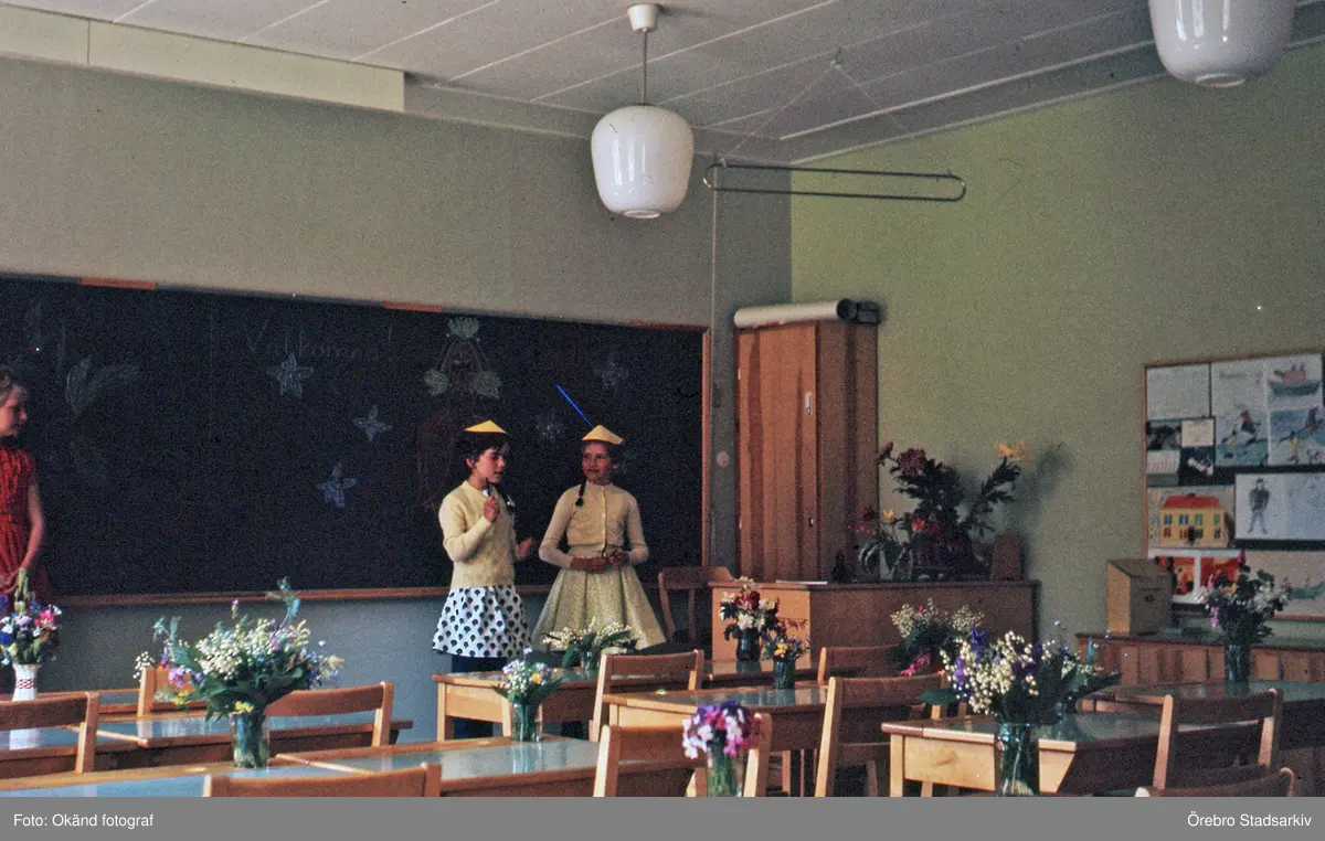 Två flickor övar inför läsårsavslutningen i Brevens skola, 1963