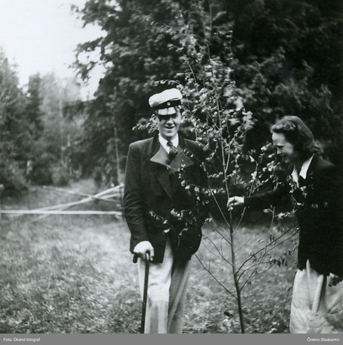 Skogis-eleven Mumrik får ett pris av Majt Heijbel, 1945