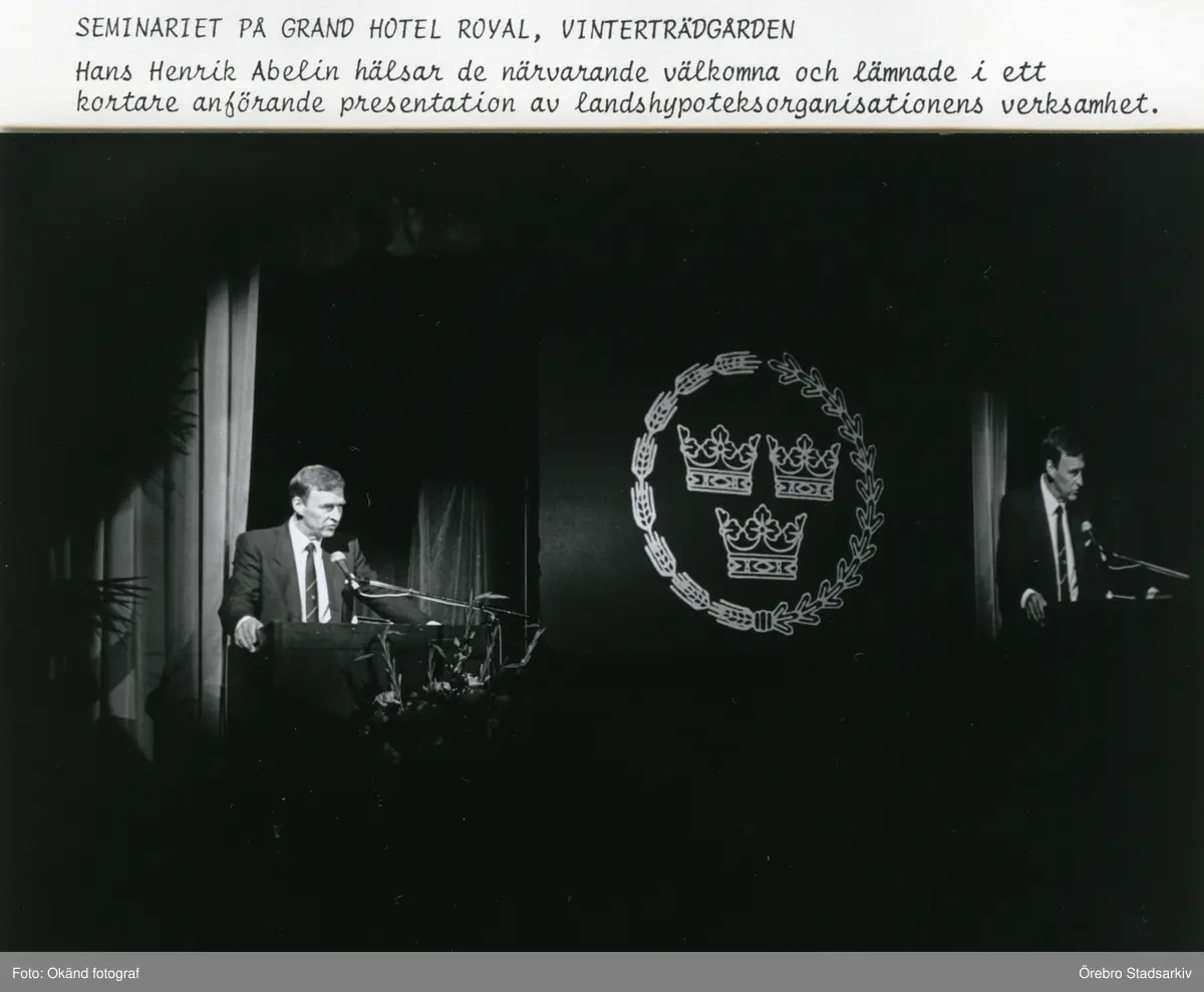 VD Hans Henrik Abelin hälsar välkommen till seminariet vid Sveriges allmänna hypoteksbank 125 år-jubileum, 1986-09-23