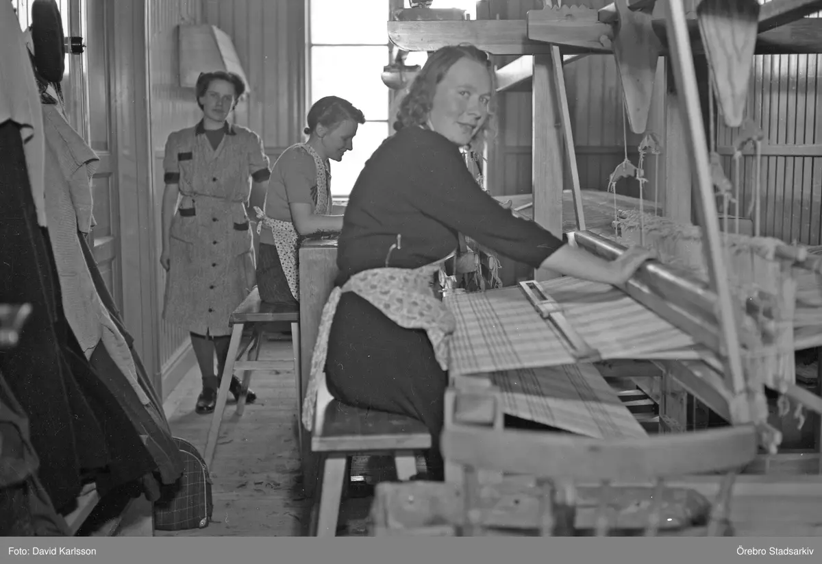 Vävkurs i slöjdsalen på Fridhems skola, 1950-tal