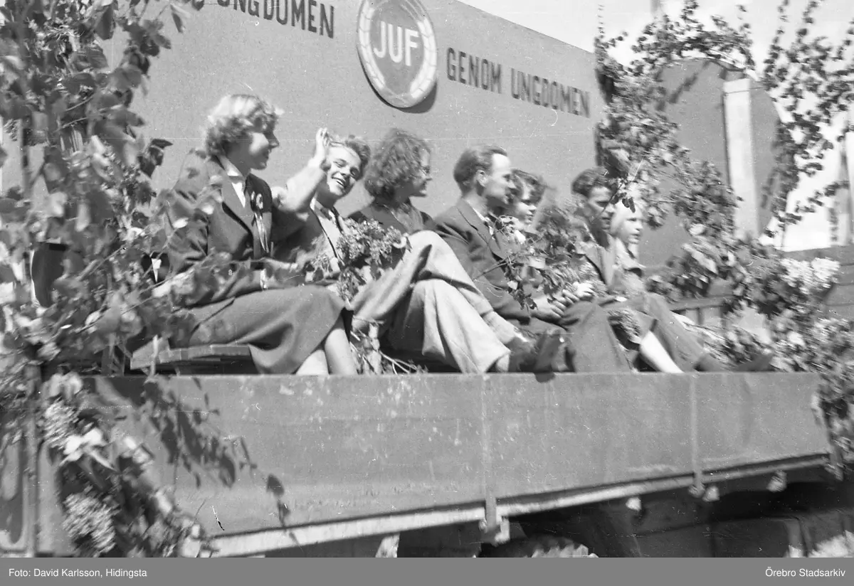 Familjen Eriksson åker flak på Örebromässan, 1947