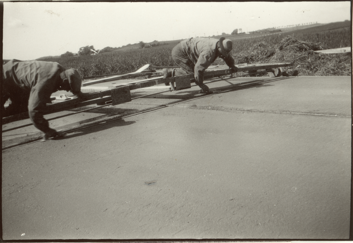 Titel: Anläggning av betongväg mellan Malmö och Svedala, vid Hyltarp.