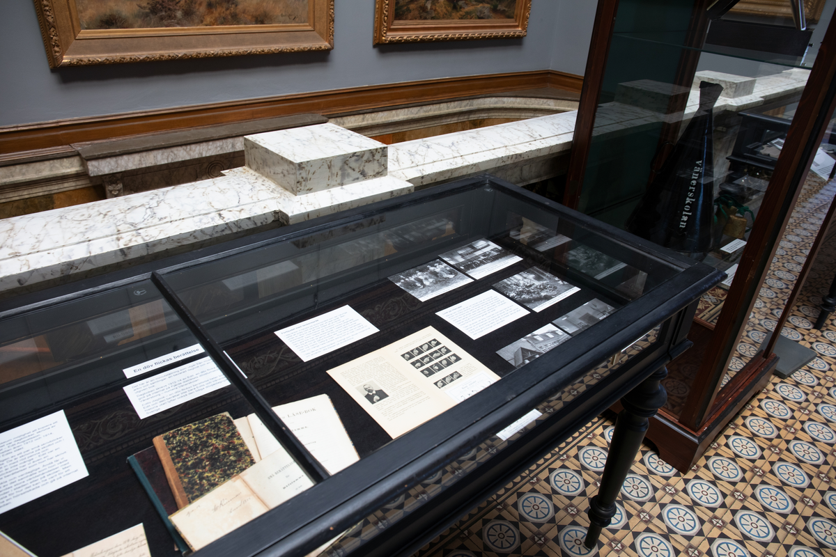 Titel: Vänersborgs museum, trapphallen. Tillfällig miniutställning
