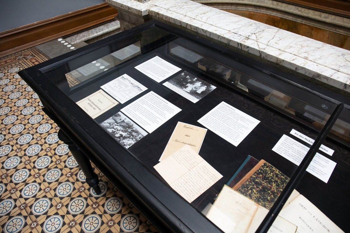Titel: Vänersborgs museum, trapphallen. Tillfällig miniutställning